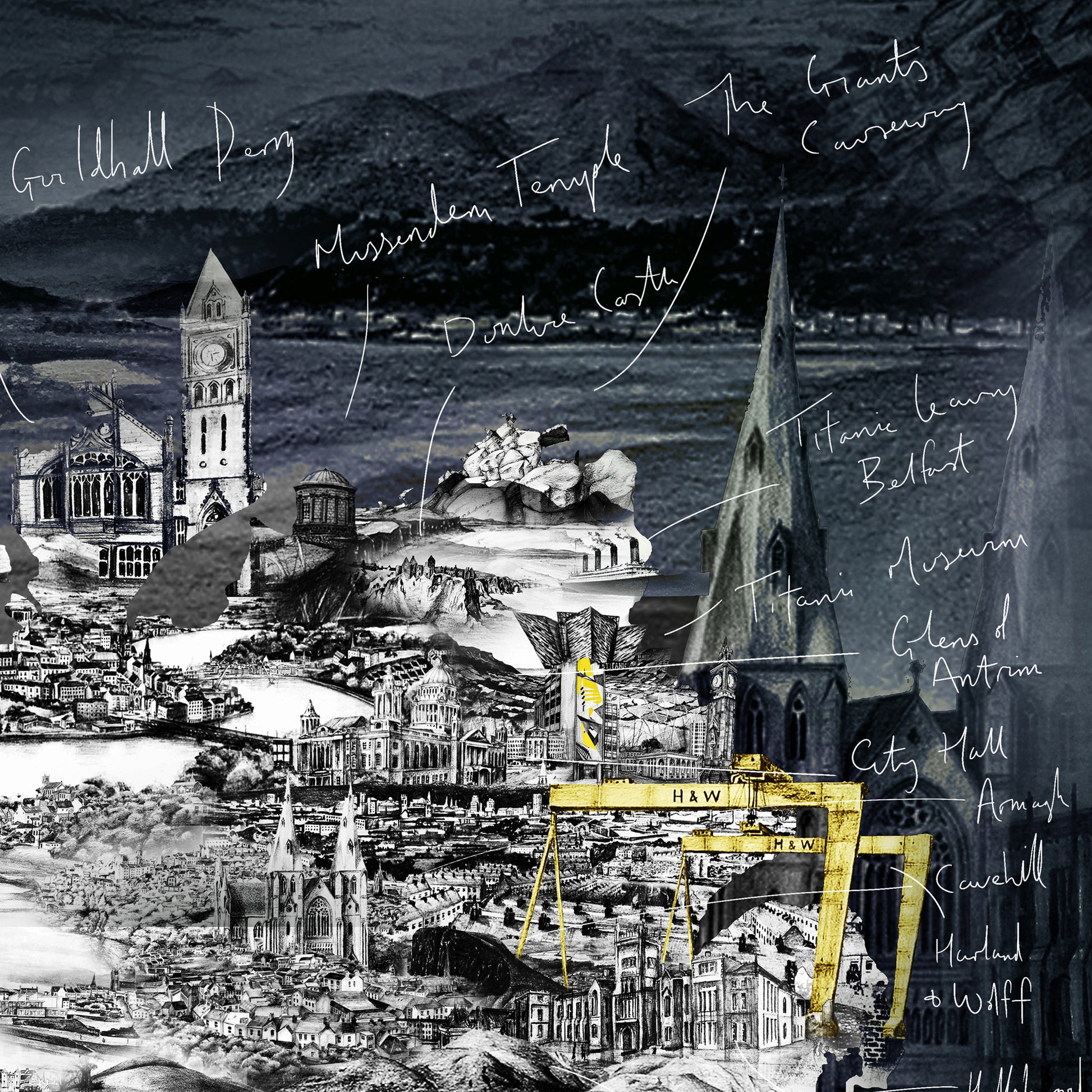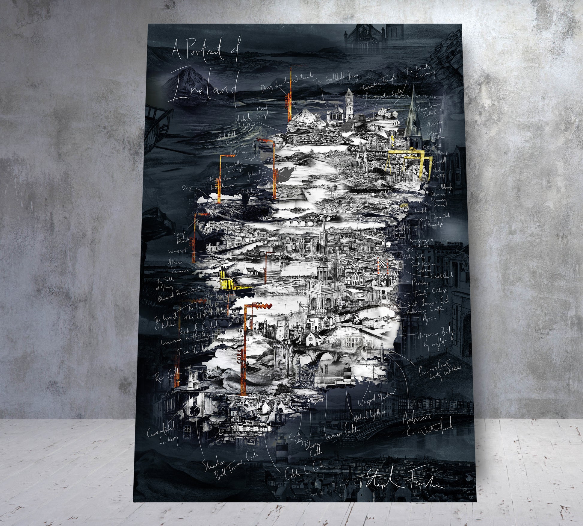 A Portrait of Ireland is a moody and atmospheric drawing capturing many of Stephen's original pencil sketches from around Ireland. It is a Limited Editions piece of /95 on Brushed Aluminium, these large pieces will light up and invigorate any space.