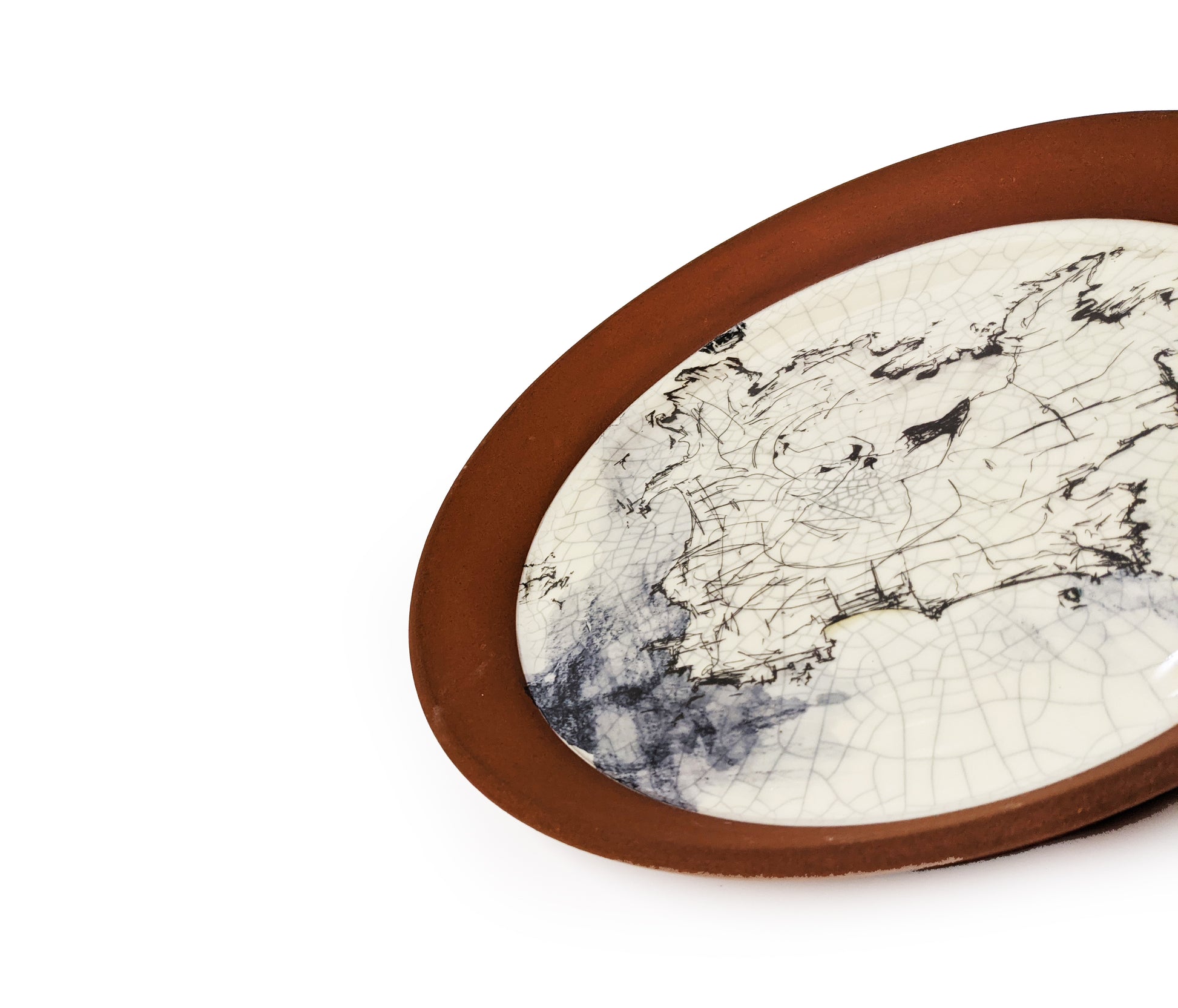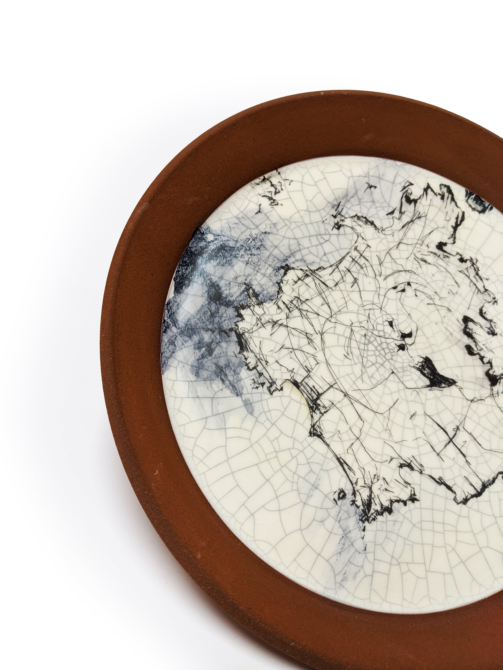 This piece is part of a family of pots recently made at our studio in Belfast, where every member of our small team has a hand in the making. From our range Isle, this pot is 1/1 and part of a body of landscape sketches looking down and in, as opposed to the ‘traditional’ landscape. Inspired by the coast, rocks, pools and notional maps off the Donegal coast these pieces are constantly growing, changing, and never to be repeated.
