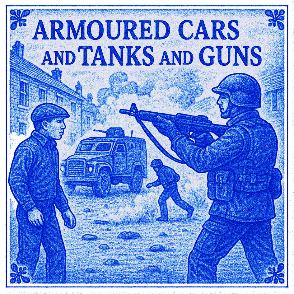 Our BELFAST delft designs take inspiration from 17th Century Dutch Delftware, itself inspired by centuries old Chinese Ming Dynasty porcelain. Each tile begins with a memory, a moment from childhood or recent history, and is brought to life with craft, imagination, and playful AI experimentation.