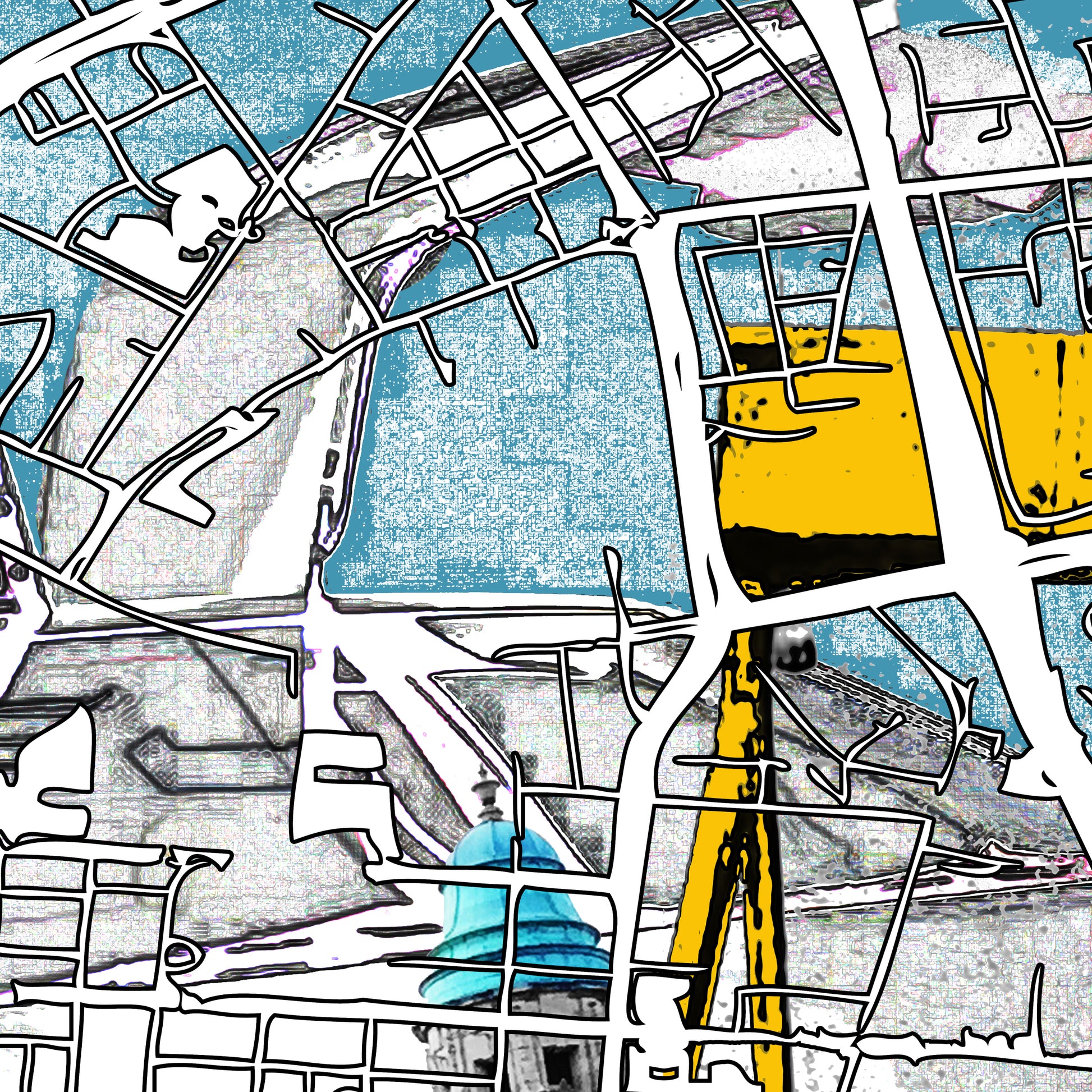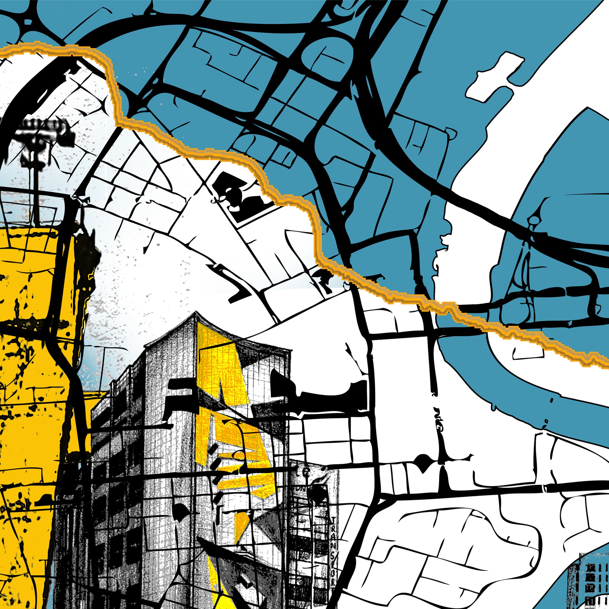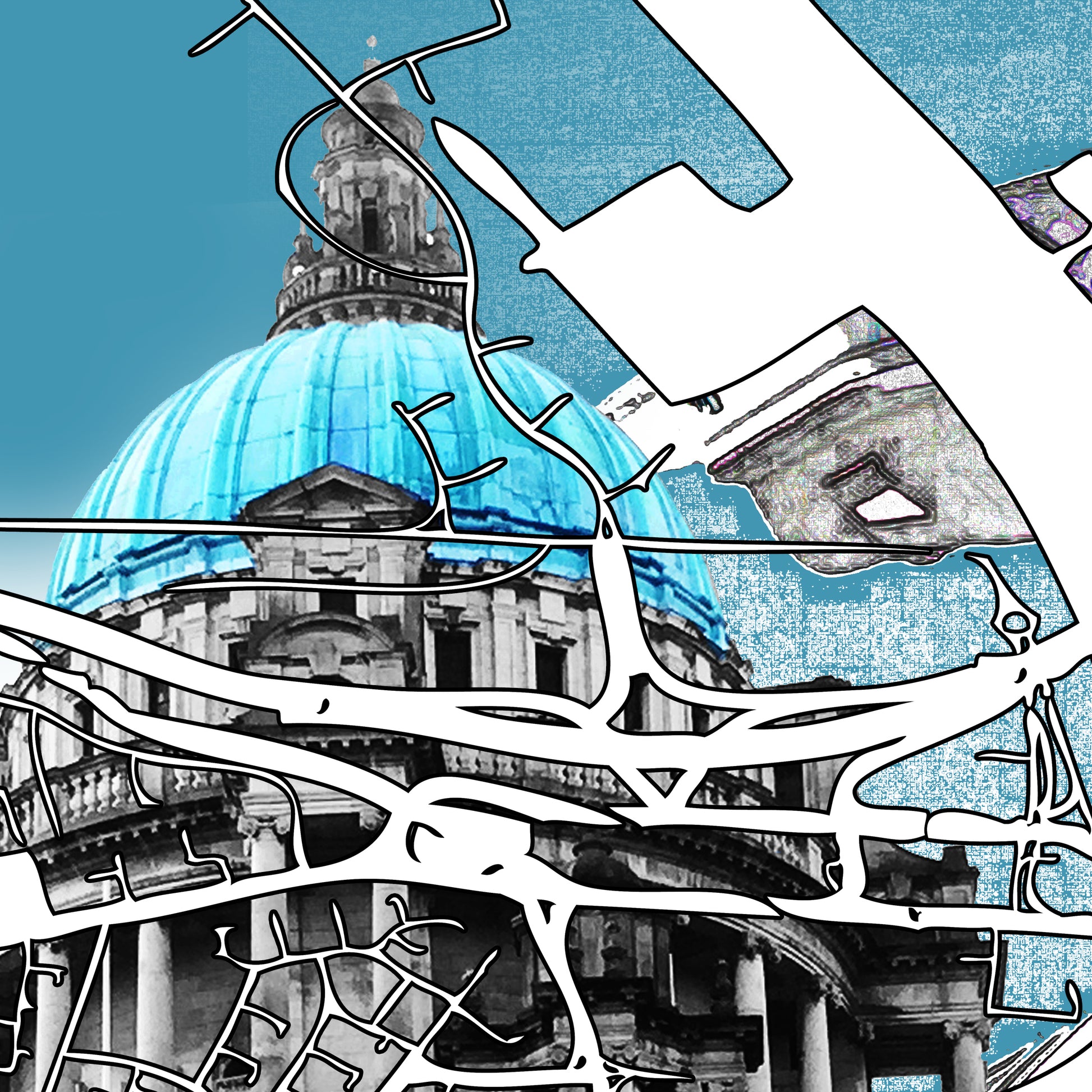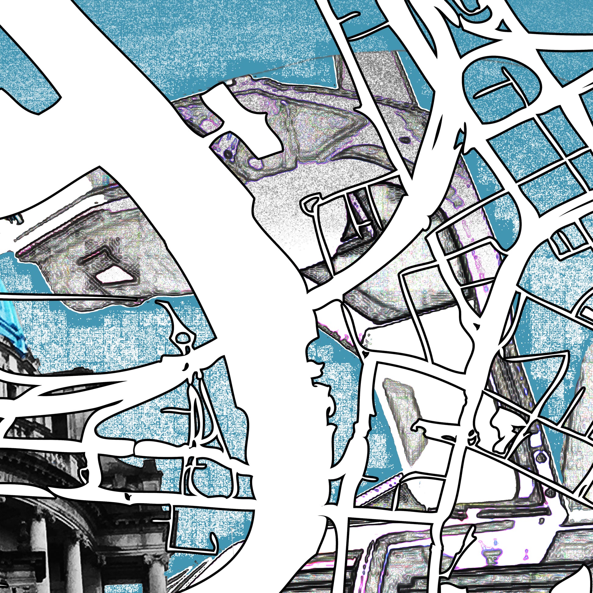 'Back To The Future' is an industrial piece that weaves a narrative through the streets of Belfast. These multi layered pieces weave a narrative through coastlines and ports, iconic structures and figures. They are Limited Editions of 95 on brushed Aluminium.