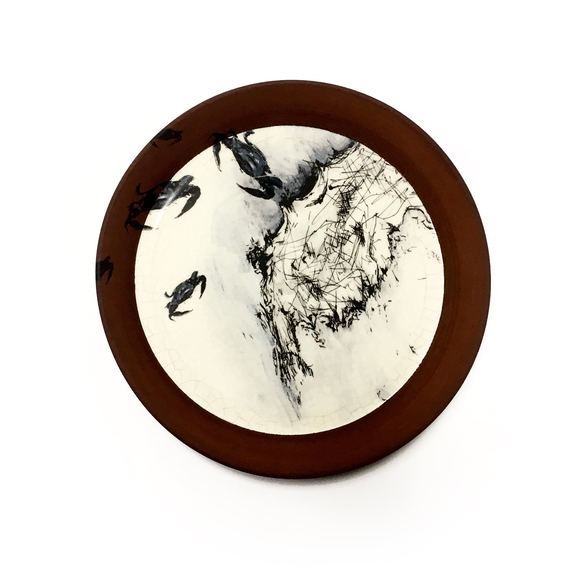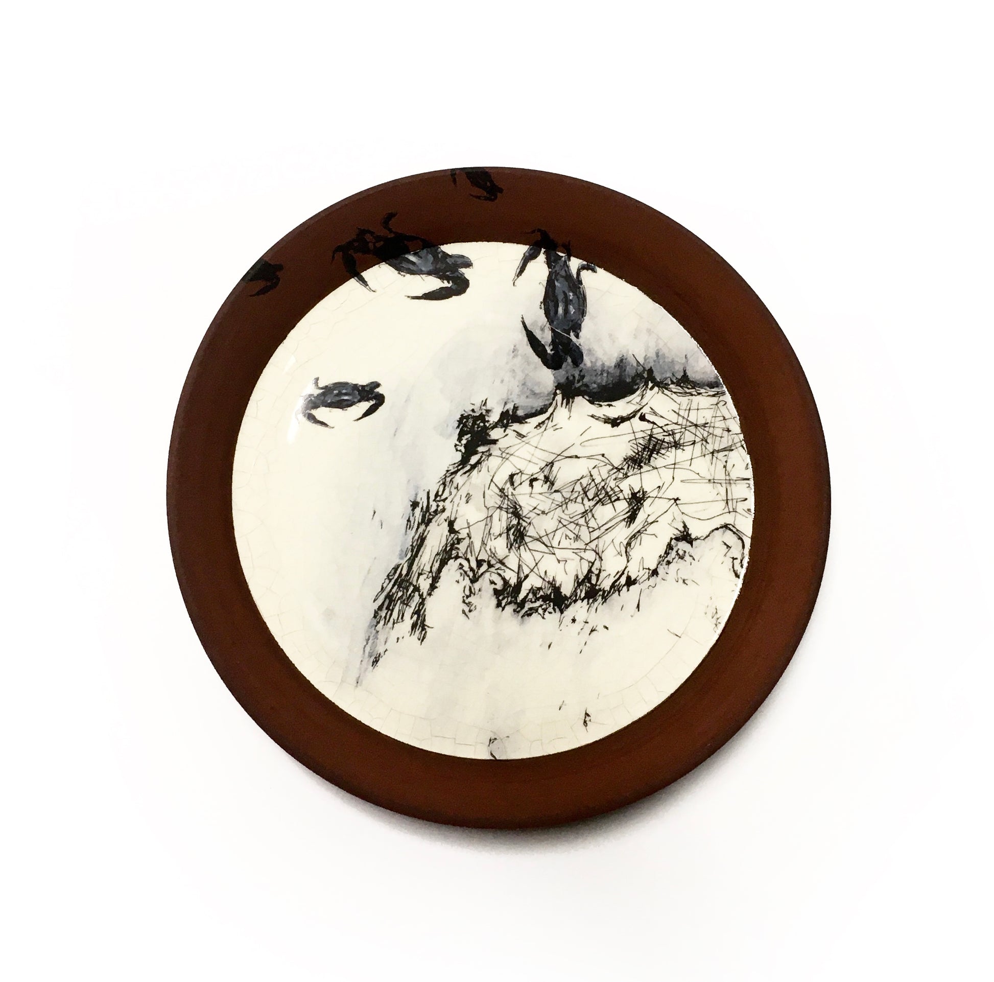 Thrown, d.38cm, high fired R/E, Slipped and decorated 1/1