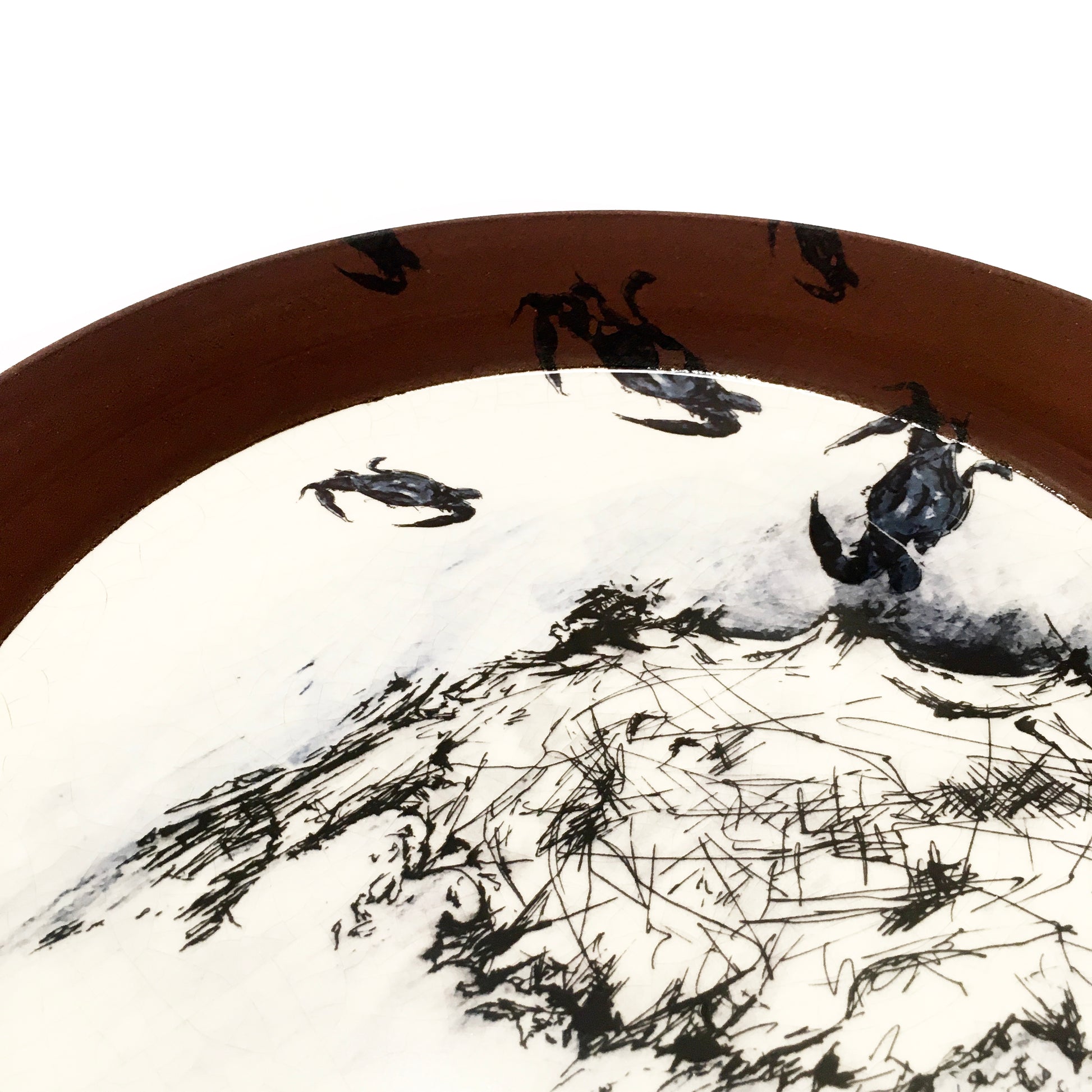 This piece is part of a family of pots recently made at our studio in Belfast, where every member of our small team has a hand in the making. From our range Isle, this pot is 1/1 and part of a body of landscape sketches looking down and in, as opposed to the ‘traditional’ landscape. Inspired by the coast, rocks, pools and notional maps off the Donegal coast these pieces are constantly growing, changing, and never to be repeated.