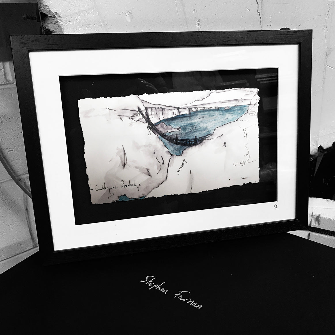 Stephen's sketches are available framed on Porcelain in three sizes, they are listed below. Drawings are also available as Limited Edition prints on wood (these large format pieces are very impressive). You can see some examples of the porcelain and wood pieces in the images.