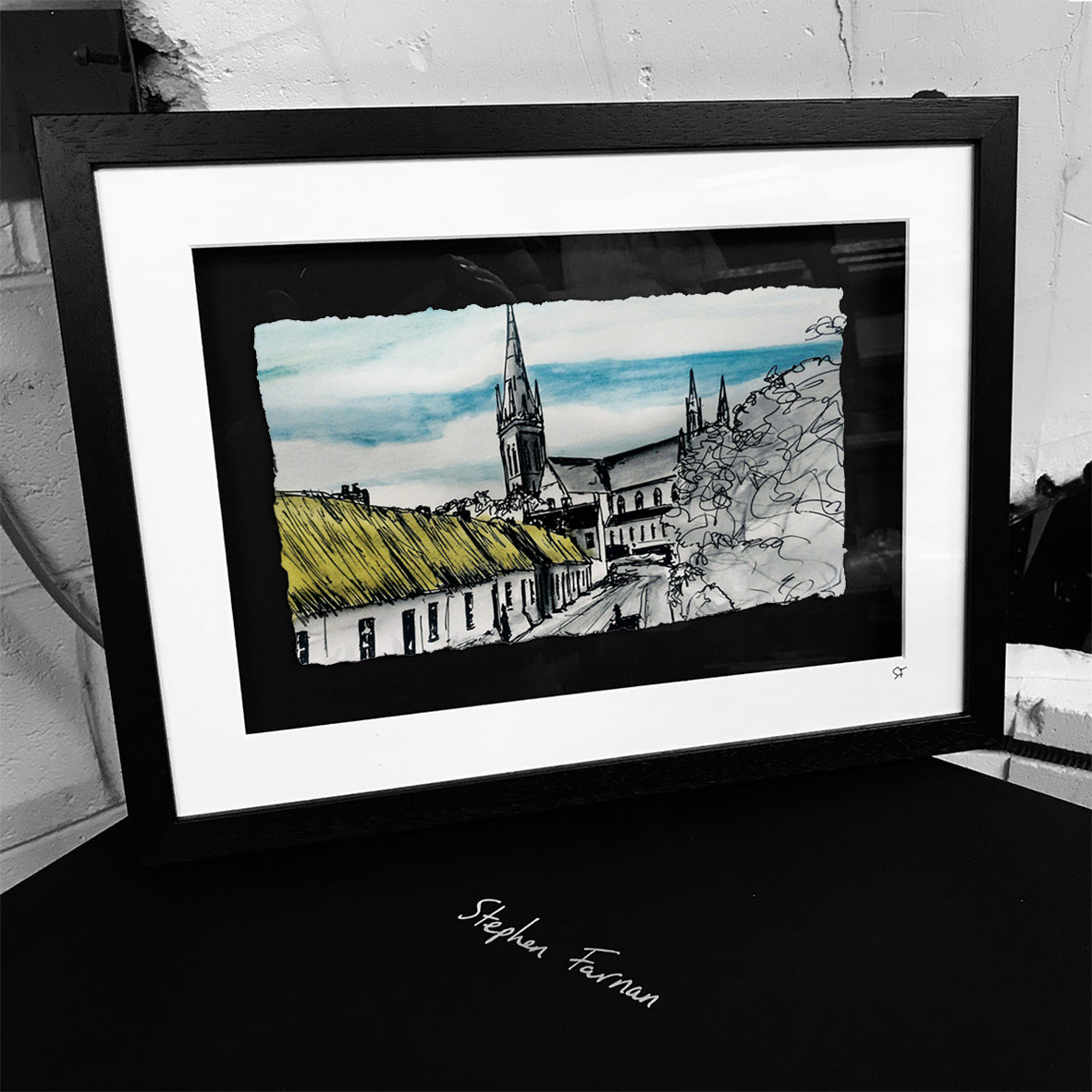 Stephen's collection of porcelain sketches is drawn from across Ireland and Britain. Capturing many of the islands treasured landscapes, from iconic Coastlines & Cathedrals, Universities & Castles, Mountains & Beaches, Towns & Cities and remembered Old Street Scenes. Stephen has titled this body of work, Captured Memories - Timeless Landscapes and Memories Captured Forever in Porcelain. Each slice of porcelain is rolled by hand, cut, ripped, stamped and fired in his Belfast Studio, overseen by himself and his dedicated team.