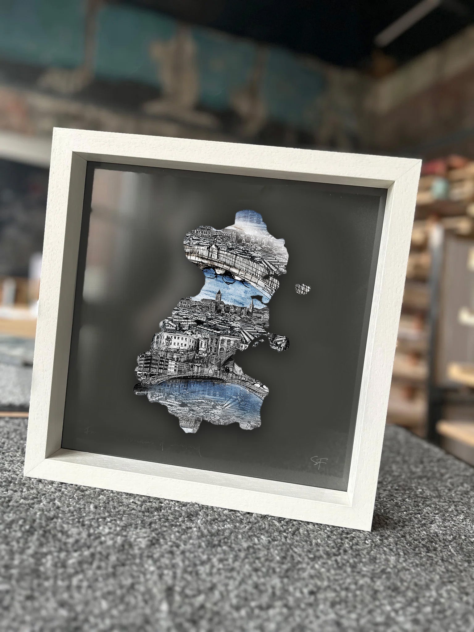 - Porcelain: Each piece is bespoke and made to order, ensuring a unique creation. Hand-rolled, cut, ripped, and stamped, these porcelain artworks require about 3 weeks for preparation. They are presented in a floated white box frame, titled, and personally signed by Stephen himself.