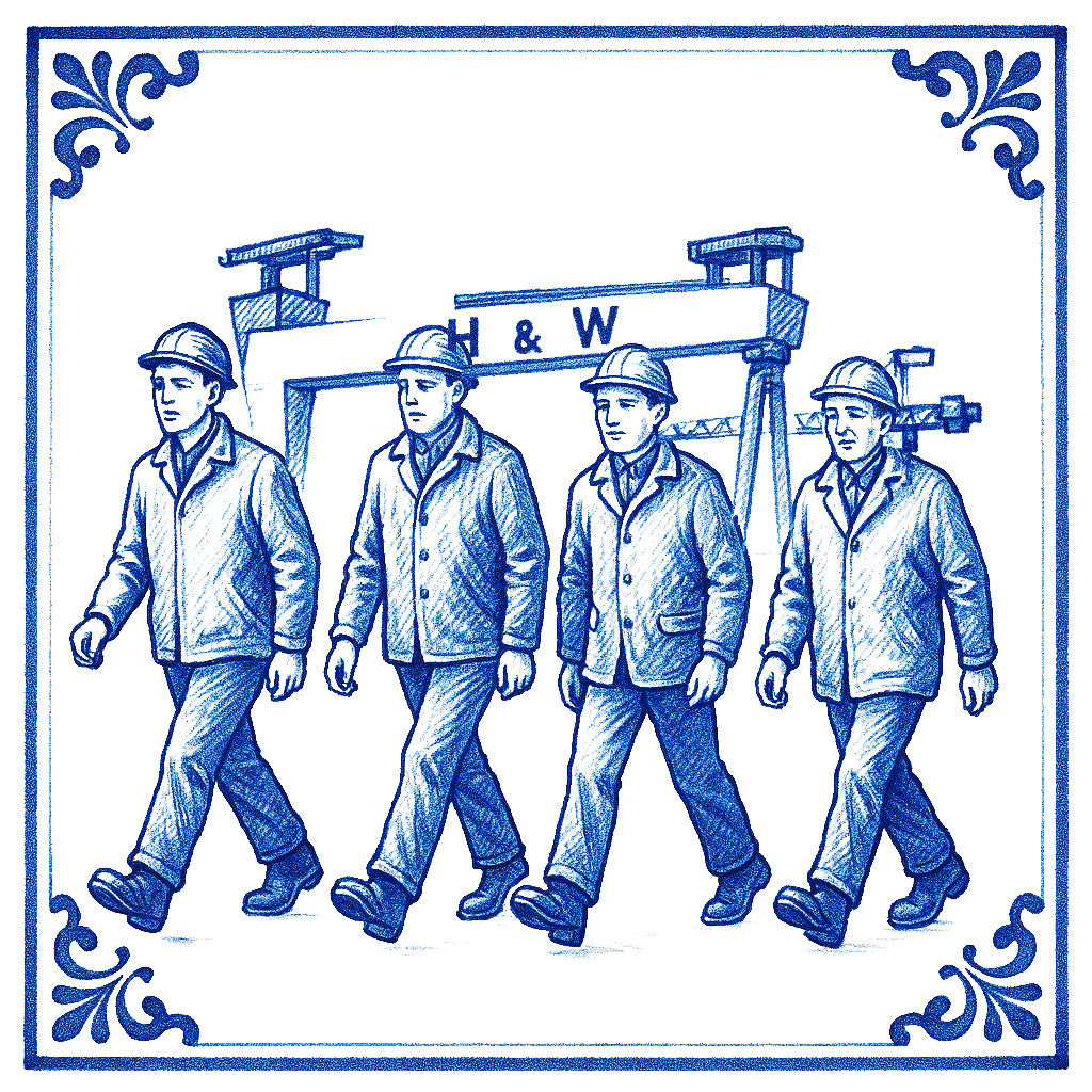 Our BELFAST delft designs take inspiration from 17th Century Dutch Delftware, itself inspired by centuries old Chinese Ming Dynasty porcelain. Each tile begins with a memory, a moment from childhood or recent history, and is brought to life with craft, imagination, and playful AI experimentation.