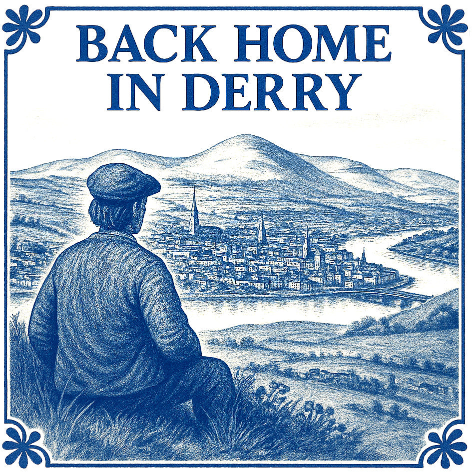 Our BELFAST delft designs take inspiration from 17th Century Dutch Delftware, itself inspired by centuries old Chinese Ming Dynasty porcelain. Each tile begins with a memory, a moment from childhood or recent history, and is brought to life with craft, imagination, and playful AI experimentation.