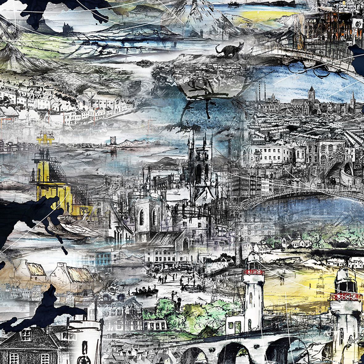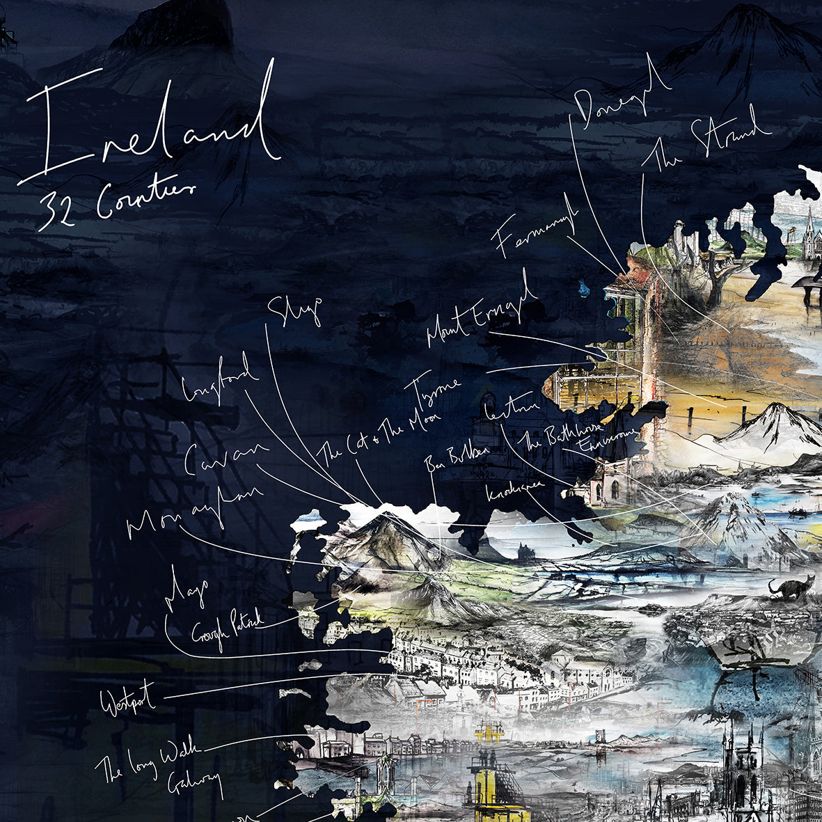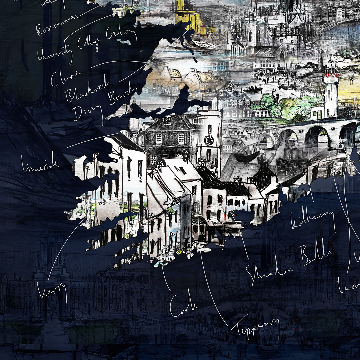 'Ireland, 32 Counties' is a moody and atmospheric piece with splashes of colour in it, capturing the essence of Ireland. It is a Limited Editions piece of /95 on Brushed Aluminium, these large pieces will light up and invigorate any space.