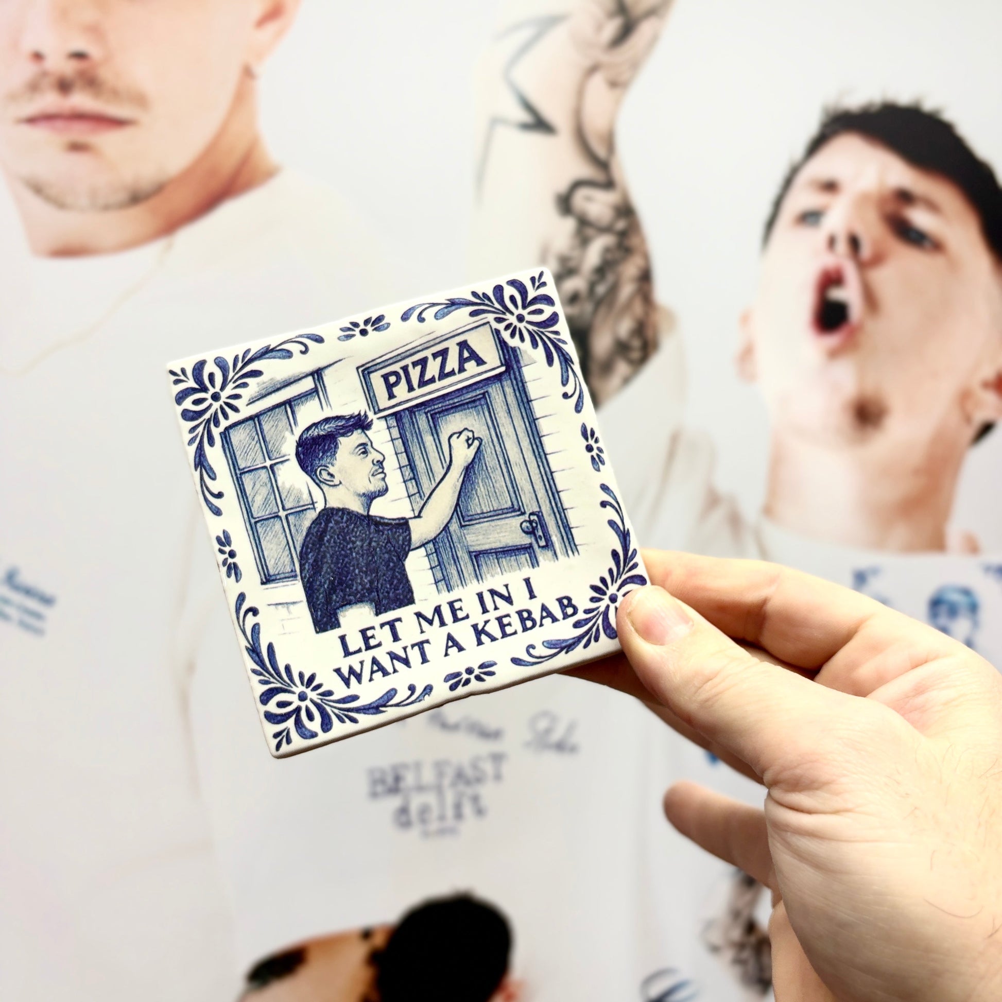 Another iconic Belfast moment. If you know, you know. “Let Me In, I Want A Kebab” has become pure comedy gold around here, and now you can bring the craic home.