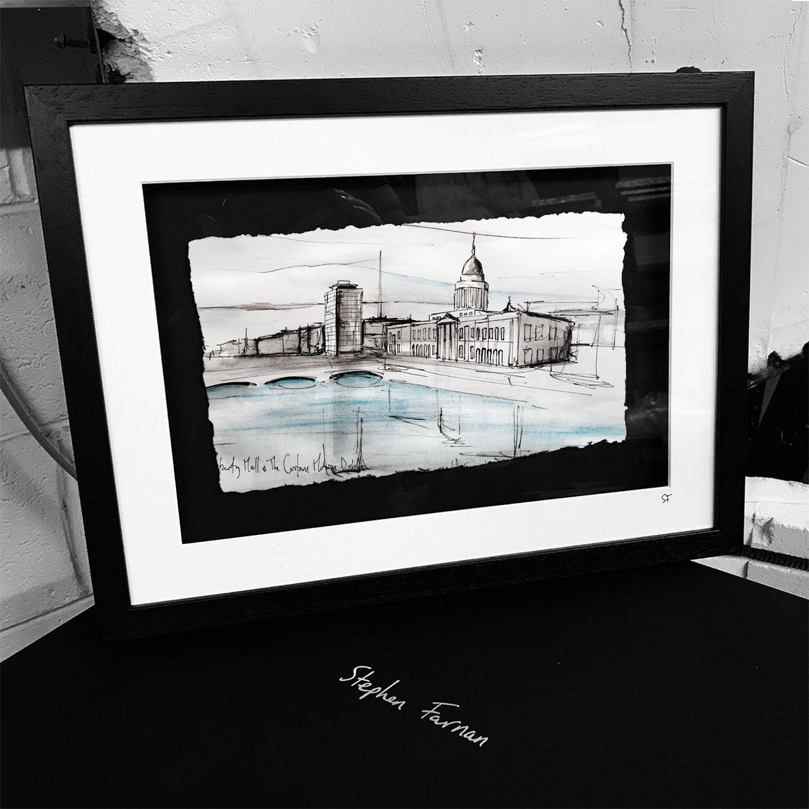 Stephen's sketches are available framed on Porcelain in three sizes, they are listed below. Drawings are also available as Limited Edition prints on wood (these large format pieces are very impressive). You can see some examples of the porcelain and wood pieces in the images.