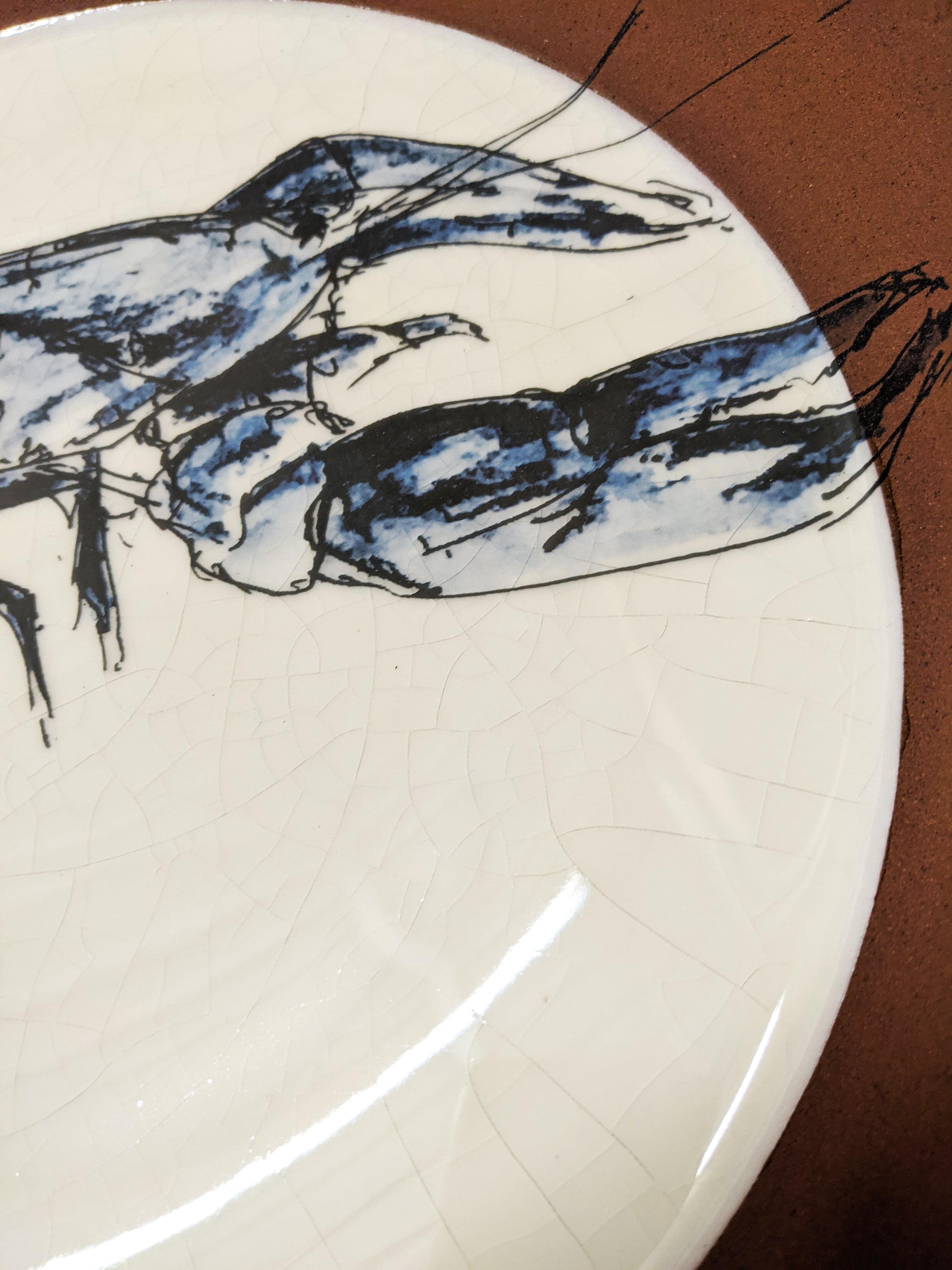 Thrown, d.43cm, high fired R/E, Slipped and decorated 1/1