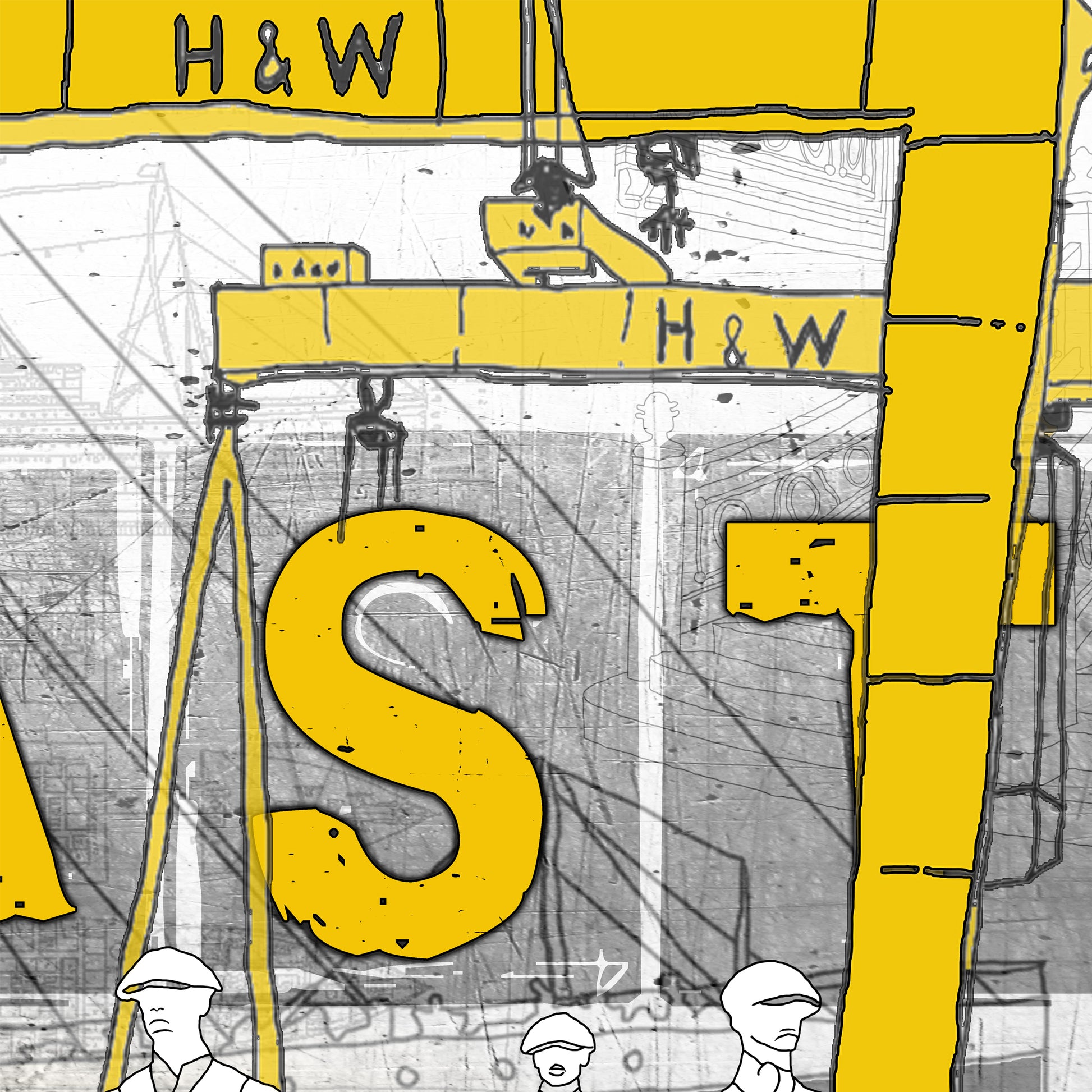 Made In Belfast is a moody and atmospheric piece that captures the essence of the West of Ireland. These multi layered pieces weave a narrative through coastlines and ports, & iconic structures and figures. Limited Editions of /95 on brushed Aluminium these large pieces will light up and invigorate any space.