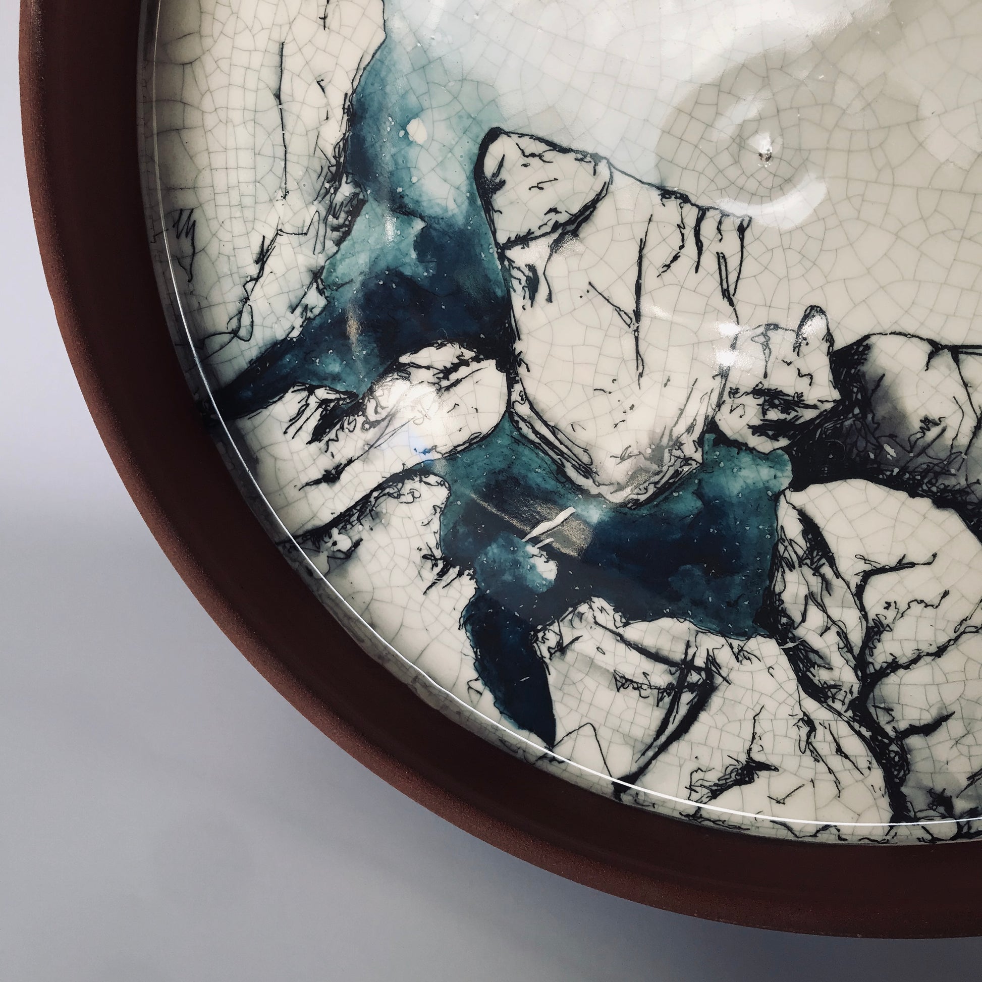 This piece is part of a family of pots recently made at our studio in Belfast, where every member of our small team has a hand in the making. From our range Maps and Cracks, this pot is 1/1 and part of a body of landscape sketches looking down and in, as opposed to the ‘traditional’ landscape. Inspired by cracks, rocks, pools and notional maps off the Donegal coast these pieces are constantly growing, changing, and never to be repeated.