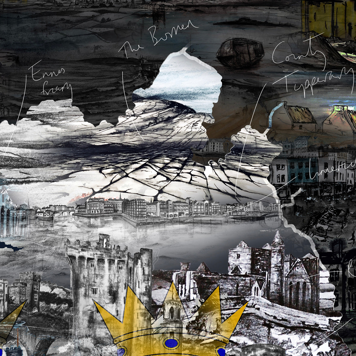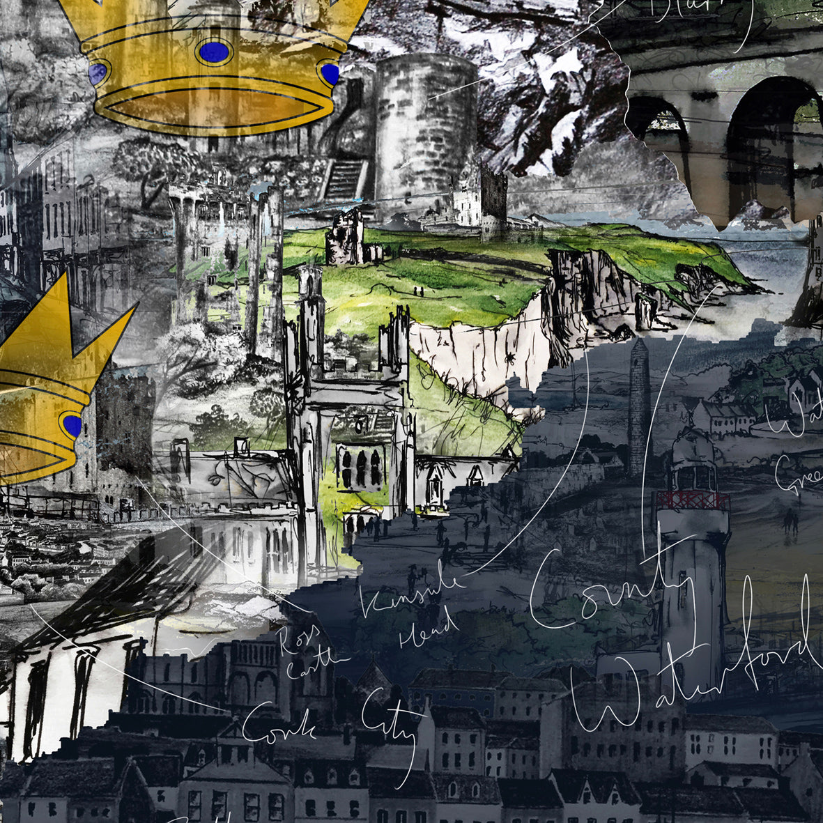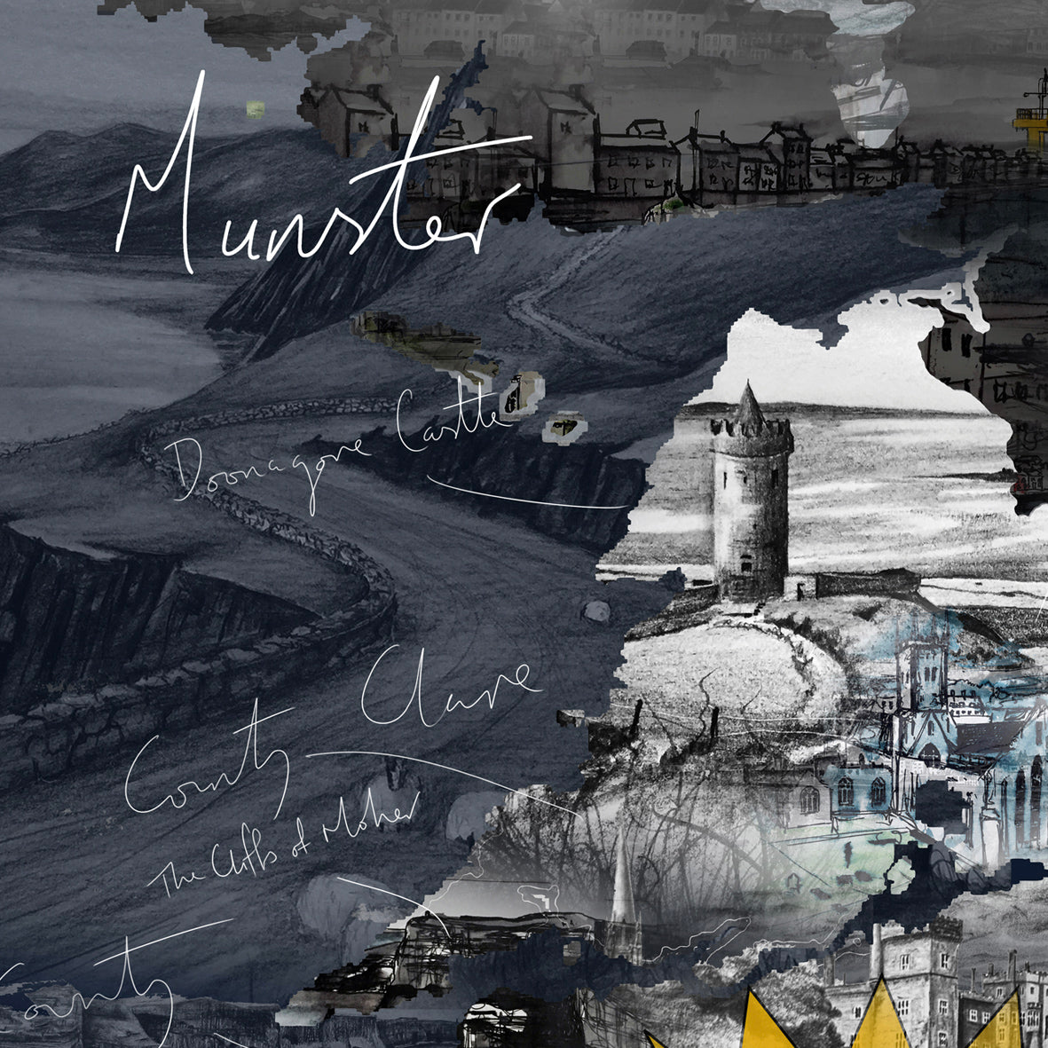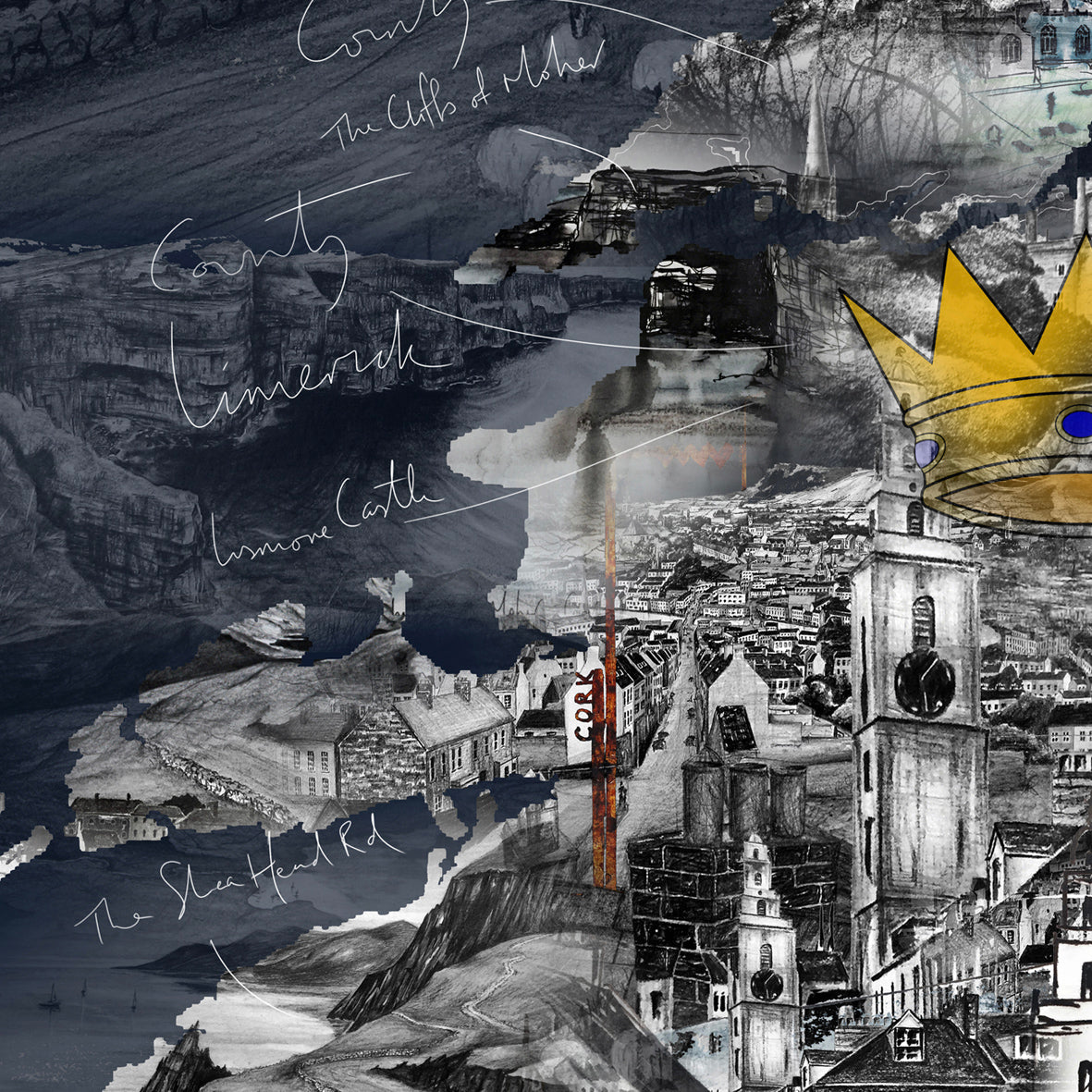'Munster' captures the southern province in stunningly glory and is amongst Stephen's latest additions to his growing body of Aluminium artwork. Capturing every corner of the Kingdom and nodding to her ancient and modern histories, this piece is bold and weaves a narrative through munster's history.