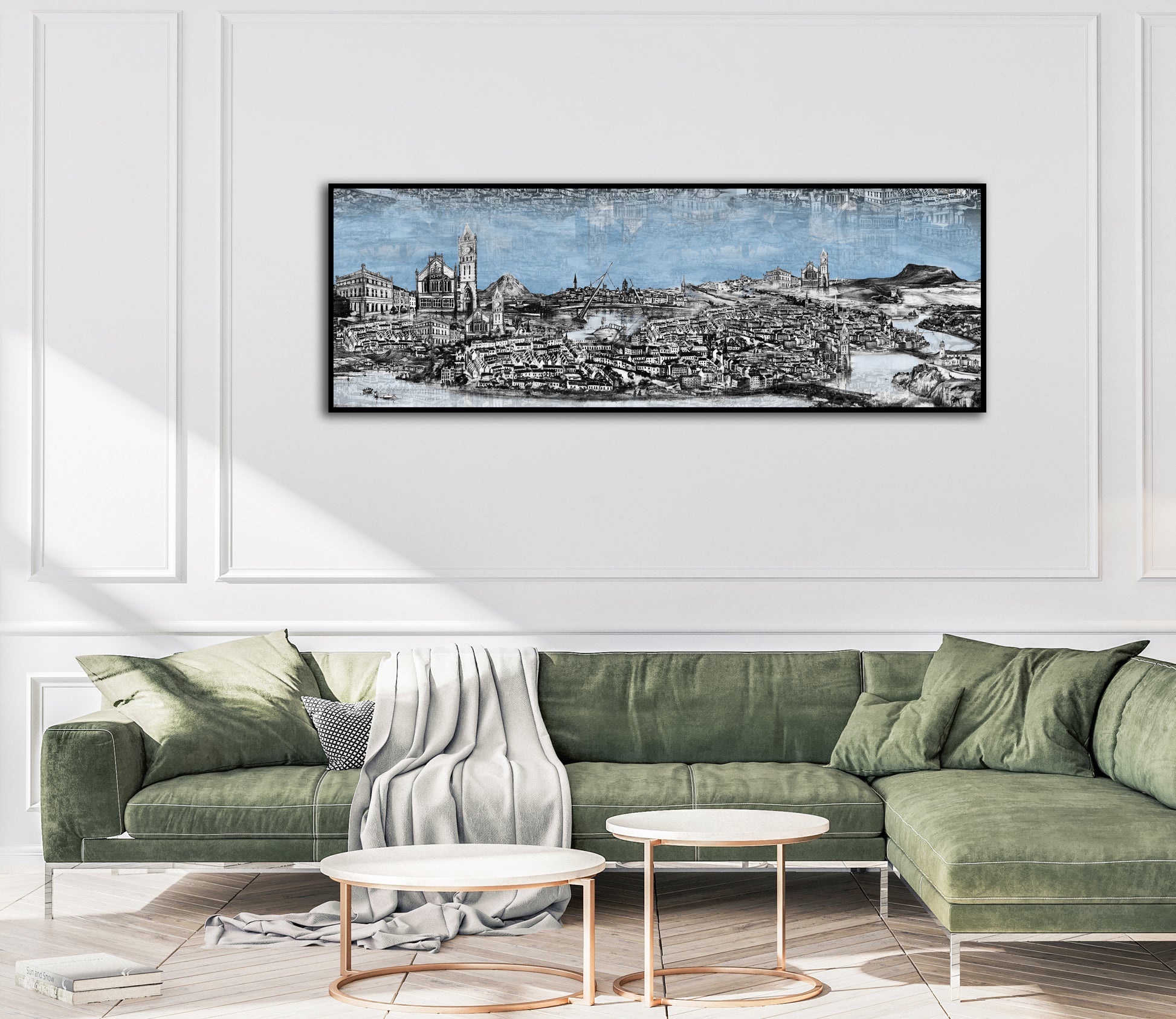 148cm x 43cm Framed *Recommended Frame for this panoramic piece (Black solid wood 'tray' frame) (Landscape)