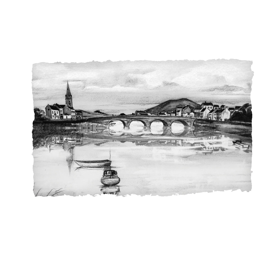 Stephen's collection of porcelain sketches is drawn from across Ireland and Britain. Capturing many of the islands treasured landscapes, from iconic Coastlines & Cathedrals, Universities & Castles, Mountains & Beaches, Towns & Cities and remembered Old Street Scenes. Stephen has titled this body of work, Captured Memories - Timeless Landscapes and Memories Captured Forever in Porcelain. Each slice of porcelain is rolled by hand, cut, ripped, stamped and fired in his Belfast Studio, overseen by himself and his dedicated team.