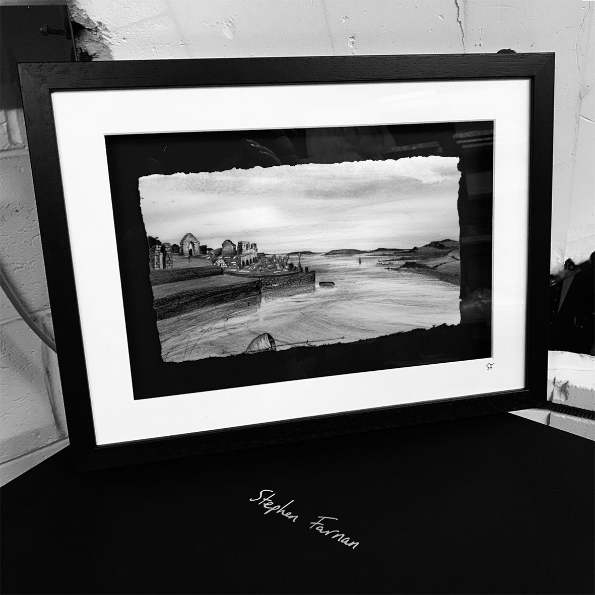 Stephen's sketches are available framed on Porcelain in three sizes, they are listed below. Drawings are also available as Limited Edition prints on wood (these large format pieces are very impressive). You can see some examples of the porcelain and wood pieces in the images.