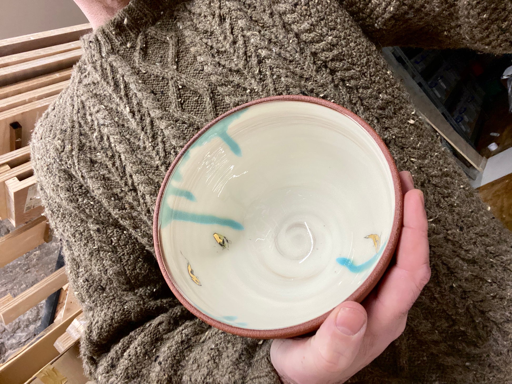 Stephen has thrown, turned, slipped, fired and decorated each piece by hand. Using his favourite clay - a warm red earthenware, these simple bowls are made to be used and enjoyed.