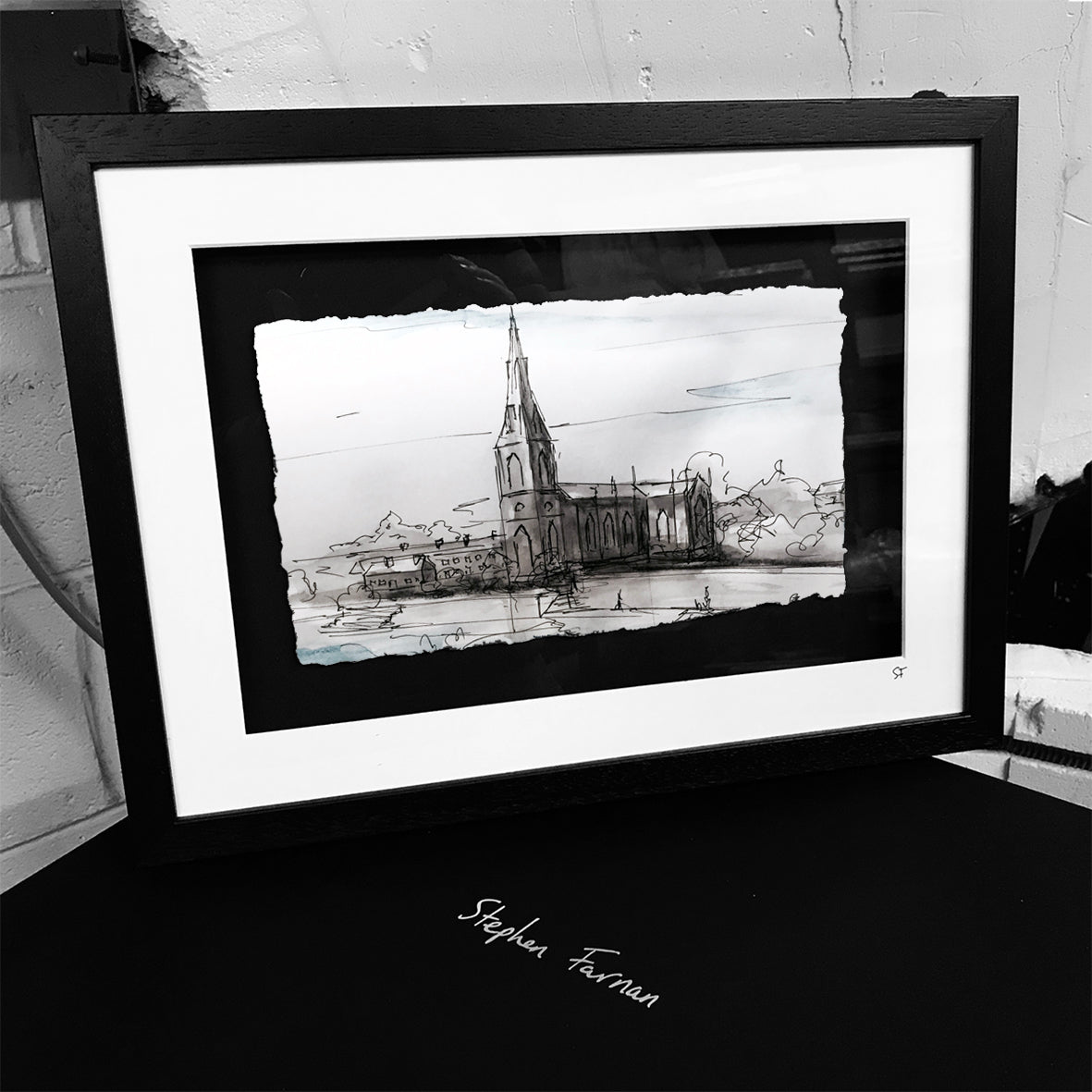 Stephen's sketches are available framed on Porcelain in three sizes, they are listed below. Drawings are also available as Limited Edition prints on wood (these large format pieces are very impressive). You can see some examples of the porcelain and wood pieces in the images.
