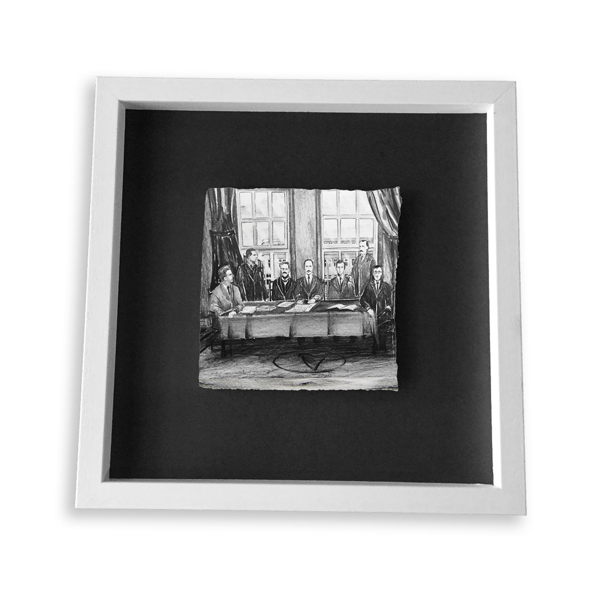Stephen's sketches are available framed on Porcelain in three sizes, they are listed below. Drawings are also available as Limited Edition prints on wood (these large format pieces are very impressive). You can see some examples of the porcelain and wood pieces in the images.
