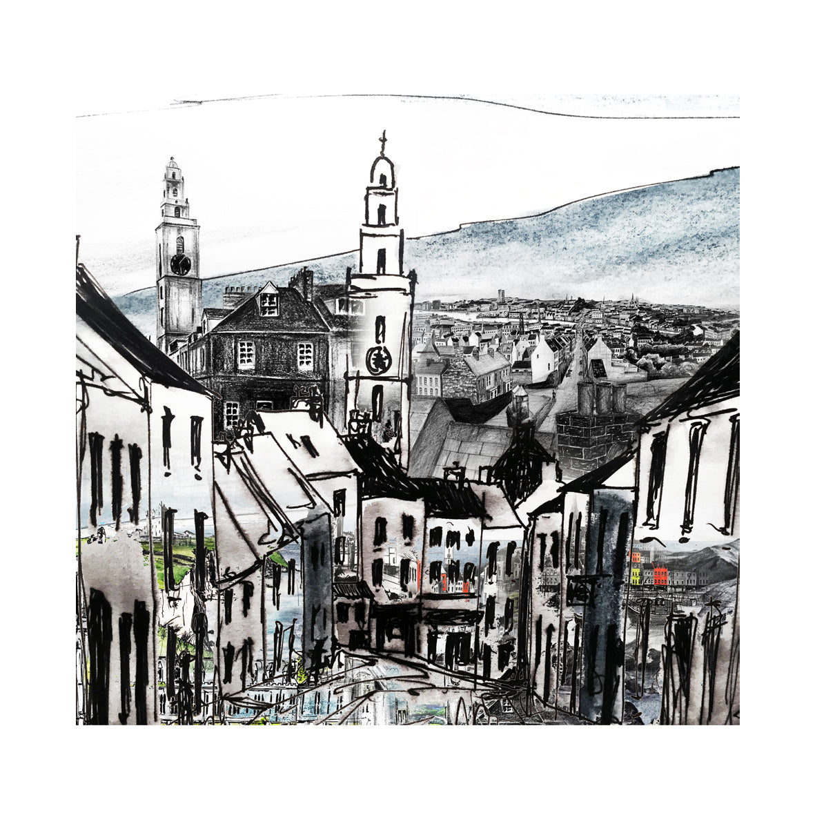 Shandon celebrates the magnificence of Cork's most iconic structure - The Shandon Bells. These multi layered pieces weave a narrative through coastlines, ports and iconic structures in Cork, down in the South West of Ireland.