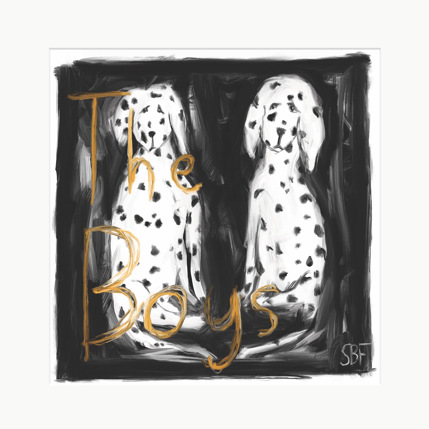 This one’s exactly what it looks like, two Dalmatians just sitting there, looking cool. No hidden message, no grand symbolism, just The Boys. The loose brushstrokes and handwritten text give them attitude and presence, proving that sometimes a simple image can say everything without trying too hard. That's that.