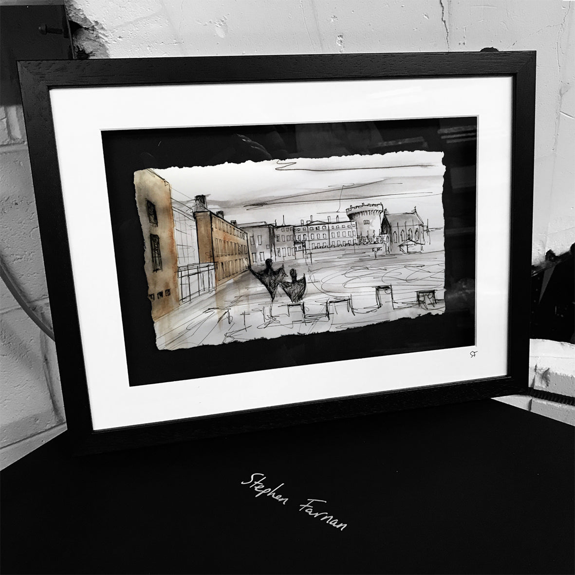 Stephen's sketches are available framed on Porcelain in three sizes, they are listed below. Drawings are also available as Limited Edition prints on wood (these large format pieces are very impressive). You can see some examples of the porcelain and wood pieces in the images.