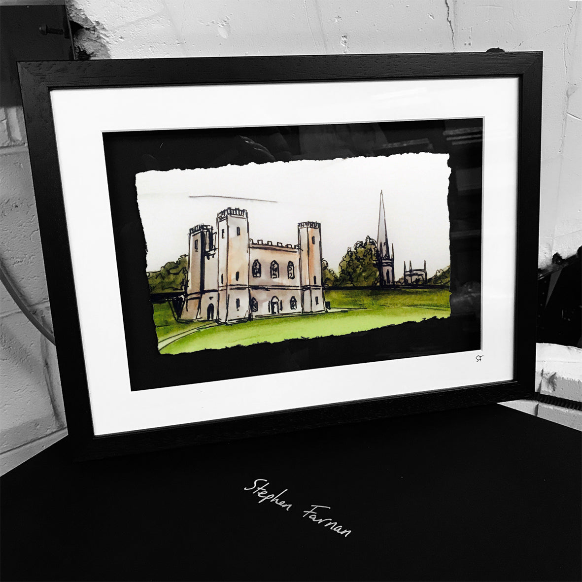 Stephen's sketches are available framed on Porcelain in three sizes, they are listed below. Drawings are also available as Limited Edition prints on wood (these large format pieces are very impressive). You can see some examples of the porcelain and wood pieces in the images.