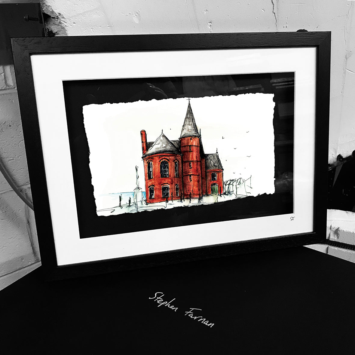 Stephen's sketches are available framed on Porcelain in three sizes, they are listed below. Drawings are also available as Limited Edition prints on wood (these large format pieces are very impressive). You can see some examples of the porcelain and wood pieces in the images.