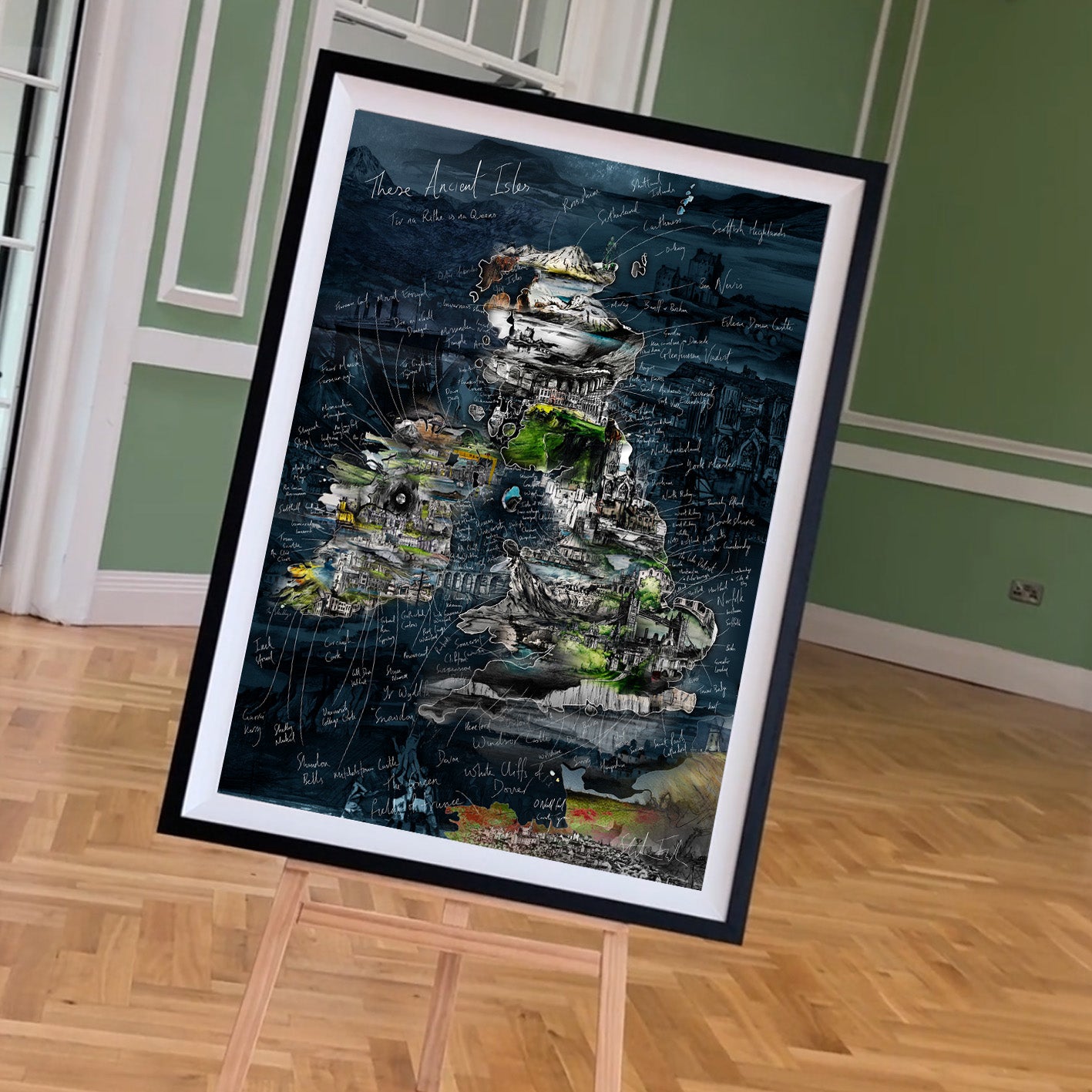 These stunning metal pieces are available unframed or framed. But we recommend our in house framing service, the 'Scoop' Frame for These Ancient Isles is probably best suited to this piece, but it's your choice.