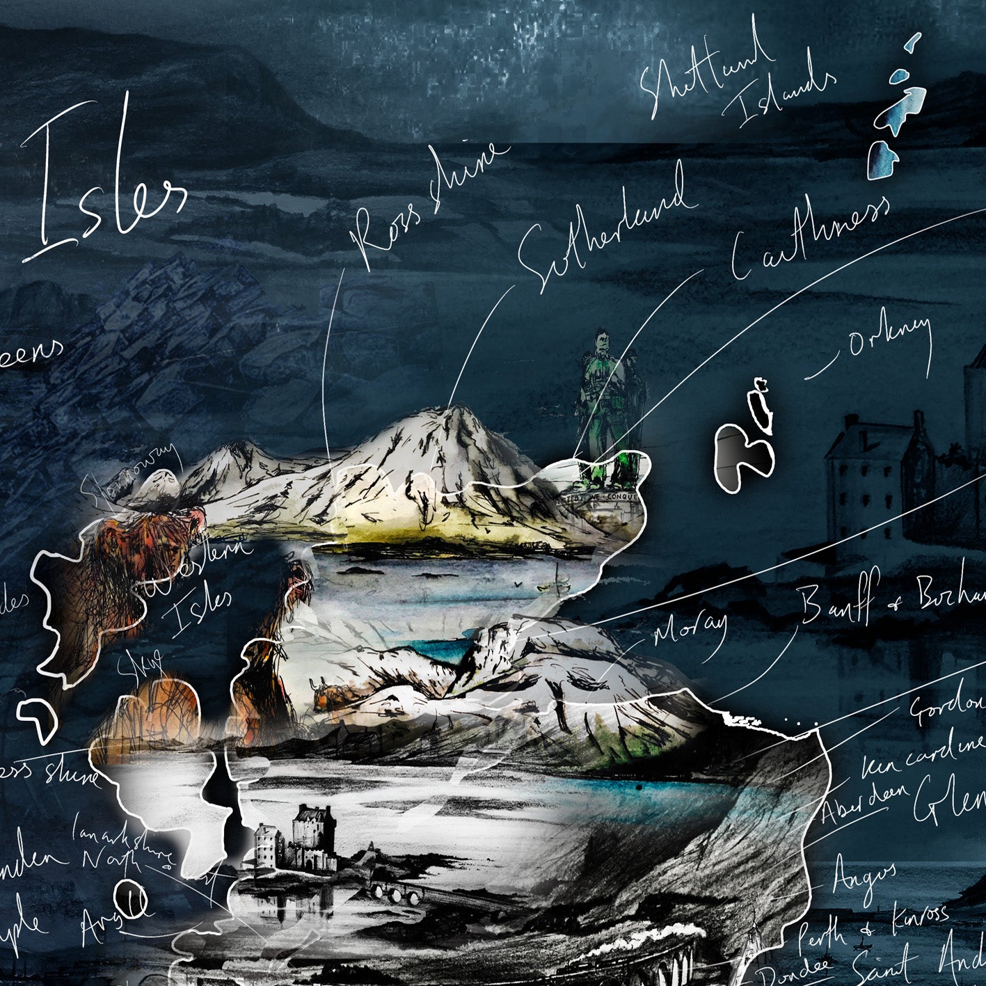 The luminous metal surface brings texture and light into play, enhancing the artwork’s sense of movement and myth. More than a map, it is a visual journey — a tribute to land, legend, and the intertwined stories of the ancient isles.