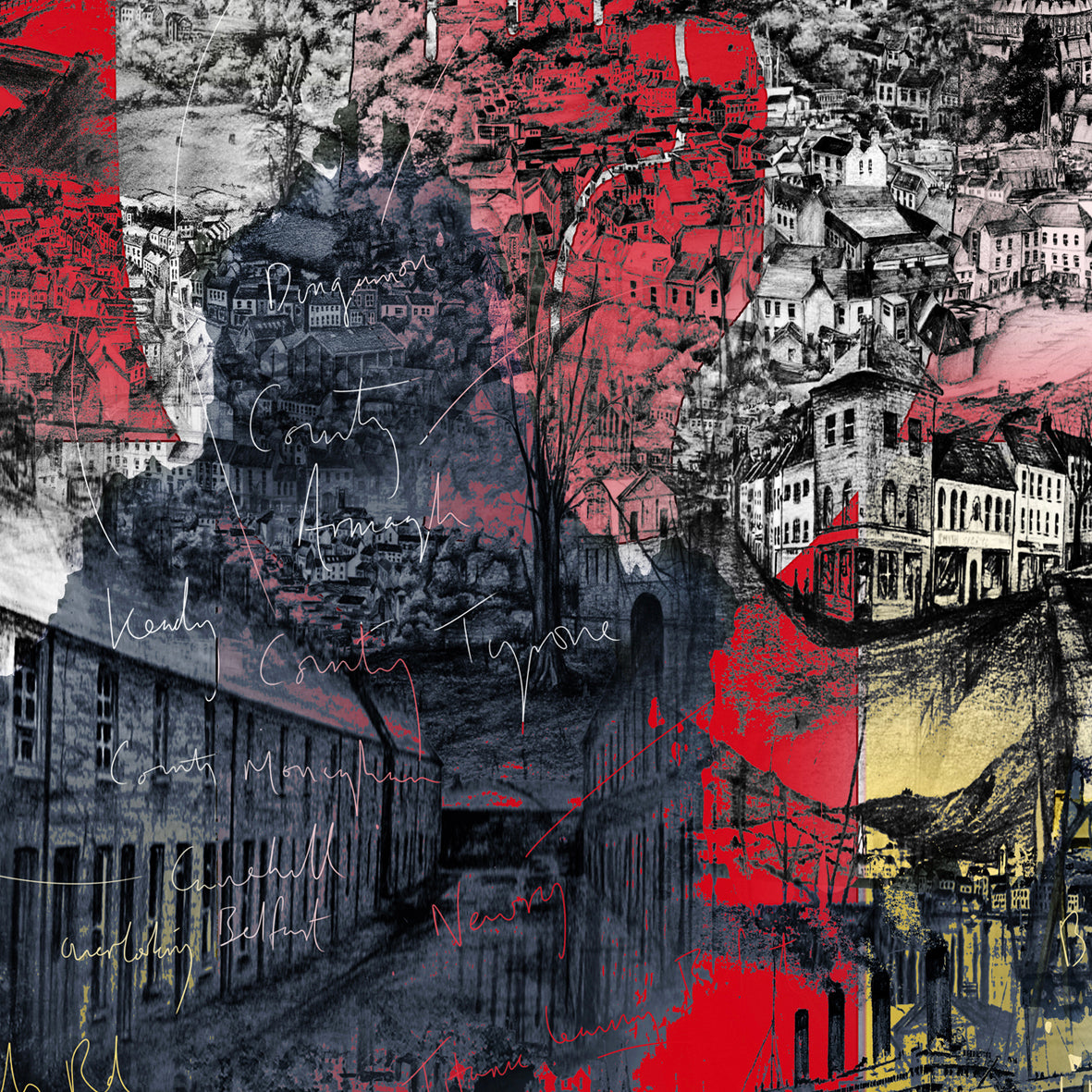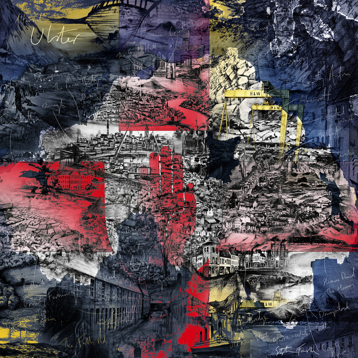 'Ulster' captures the northern province in stunningly glory and is amongst Stephen's latest additions to his growing body of Aluminium artwork. Capturing every corner of the North of Ireland and nodding to her ancient and modern histories, this piece is bold and weaves a narrative through Ulster's turbulent history.