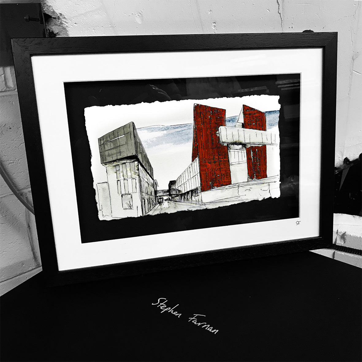 Stephen's sketches are available framed on Porcelain in three sizes, they are listed below. Drawings are also available as Limited Edition prints on wood (these large format pieces are very impressive). You can see some examples of the porcelain and wood pieces in the images.