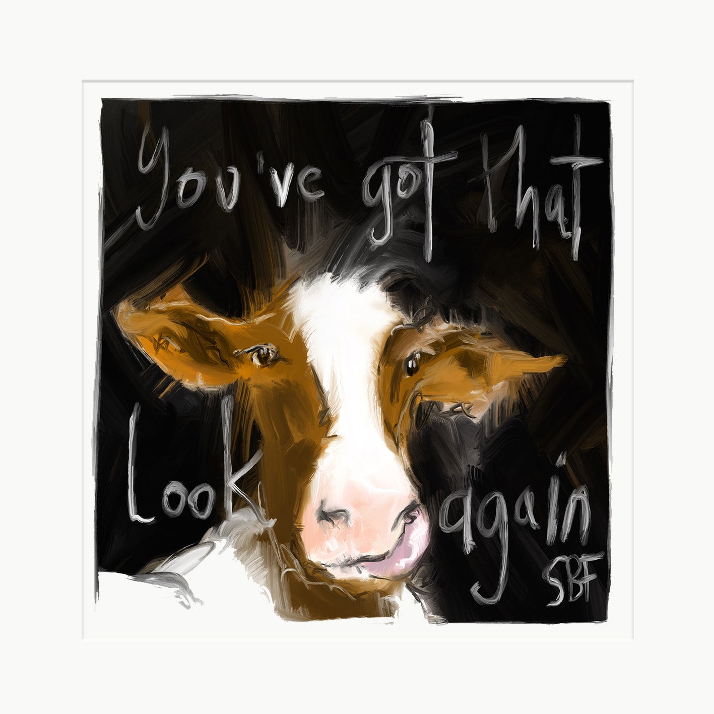 You’ve Got That Look Again takes its cue from Simply Red’s song Stars — that easy, soulful line that somehow says everything about recognition, love, and a bit of exasperation. It’s one of those phrases that sticks, and it felt perfect for this face. The piece plays on the long-standing tradition of the cow in “art” - whatever that is. A subject that always seems to sell, especially here in Belfast — but this one felt different. I couldn’t help giving her that unmistakably human look: part knowing, part unimpressed, part amused. Maybe she’s heard it all before.